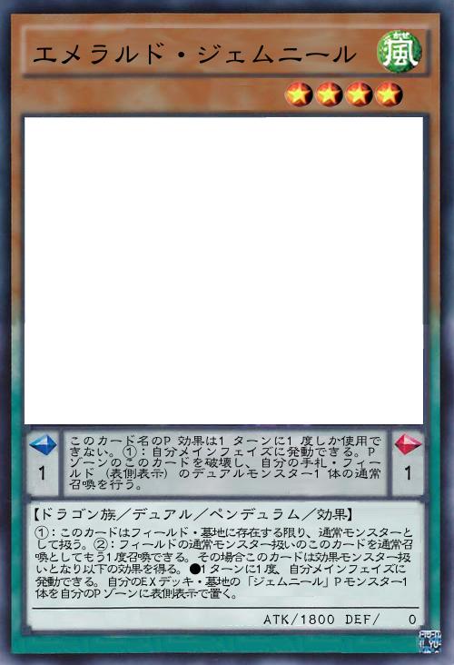 | ①:このカードはフィールド・墓地に存在する限り、通常モンスターとして扱う。②:フィールドの通常モンスター扱いのこのカードを通常召喚としてもう1度召喚できる。その場合このカードは効果モンスター扱いとなり以下の効果を得る。●1ターンに1度、自分メインフェイズに発動できる。自分のEXデッキ・墓地の「ジェムニール」Pモンスター1体を自分のPゾーンに表側表示で置く。 | |||