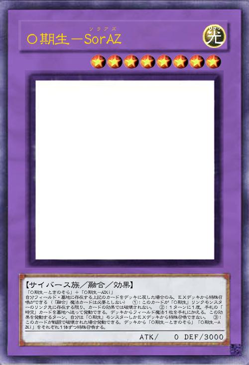 | 「0期生-ときのそら」+「0期生-AZKi」 自分フィールド・墓地に存在する上記のカードをデッキに戻した場合のみ、EXデッキから特殊召喚ができる(「融合」魔法カードは必要としない) ①:このカードが「0期生」リンクモンスターのリンク先に存在する限り、カードの効果では破壊されない。 ②:1ターンに1度、手札の「時空」カードを墓地へ送って発動できる。デッキからフィールド魔法1枚を手札に加える。この効果を発動するターン、自分は「0期生」モンスターしかEXデッキから特殊召喚できない。 ③:このカードが戦闘で破壊された場合発動できる。デッキから「0期生-ときのそら」「0期生-AZKi」をそれぞれ1体ずつ特殊召喚する。 | |||