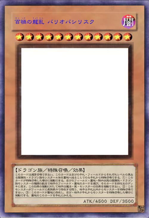 | このカードは通常召喚できない。このカードは自分の手札・フィールドからそれぞれレベルの異なる闇属性・ドラゴン族モンスター4体を墓地へ送ることでのみ手札から特殊召喚できる。①:このカードが特殊召喚した場合に発動できる。自分のフィールド・墓地・除外状態の闇属性・ドラゴン族モンスターの種類の数まで相手のフィールド・墓地のカードを選び、そのカードを持ち主のデッキに戻す。この効果の発動に対して相手は魔法・罠・モンスターの効果を発動できない。②:このモンスターがフィールドに表側表示で存在する限り、相手は手札以外からモンスターを特殊召喚できない。③:このカードが墓地に存在し、自分・相手が手札からモンスターを特殊召喚した場合に発動できる。墓地のこのカードを手札に加える。 | |||