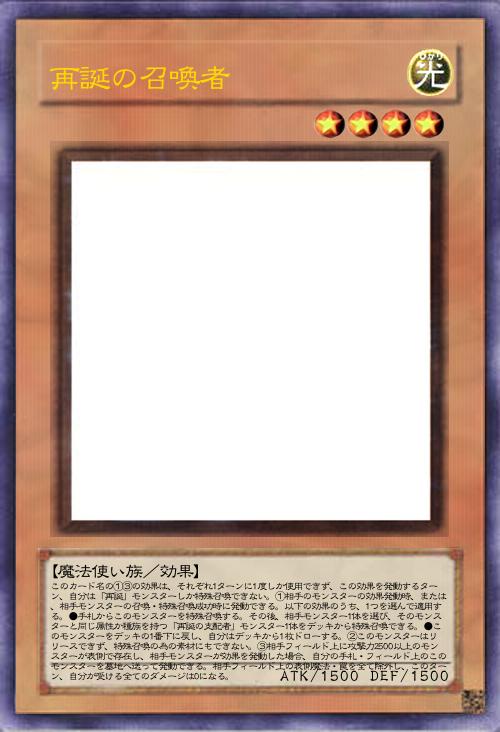 | このカード名の①③の効果は、それぞれ1ターンに1度しか使用できず、この効果を発動するターン、自分は「再誕」モンスターしか特殊召喚できない。①相手のモンスターの効果発動時、または、相手モンスターの召喚・特殊召喚成功時に発動できる。以下の効果のうち、1つを選んで適用する。●手札からこのモンスターを特殊召喚する。その後、相手モンスター1体を選び、そのモンスターと同じ属性か種族を持つ「再誕の支配者」モンスター1体をデッキから特殊召喚できる。●このモンスターをデッキの1番下に戻し、自分はデッキから1枚ドローする。②このモンスターはリリースできず、特殊召喚の為の素材にもできない。③相手フィールド上に攻撃力2500以上のモンスターが表側で存在し、相手モンスターが効果を発動した場合、自分の手札・フィールド上のこのモンスターを墓地へ送って発動できる。相手フィールド上の表側魔法・罠を全て除外し、このターン、自分が受ける全てのダメージは0になる。 | |||