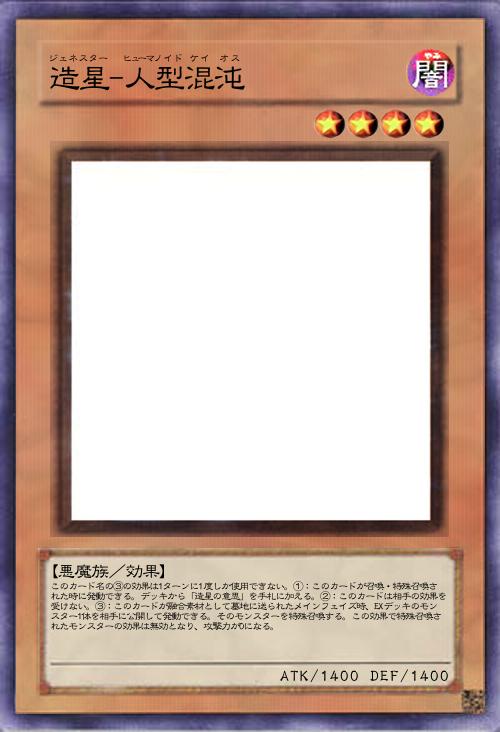 | このカード名の③の効果は1ターンに1度しか使用できない。①:このカードが召喚・特殊召喚された時に発動できる。デッキから「造星の意思」を手札に加える。②:このカードは相手の効果を受けない。③:このカードが融合素材として墓地に送られたメインフェイズ時、EXデッキのモンスター1体を相手に公開して発動できる。そのモンスターを特殊召喚する。この効果で特殊召喚されたモンスターの効果は無効となり、攻撃力が0になる。 | |||