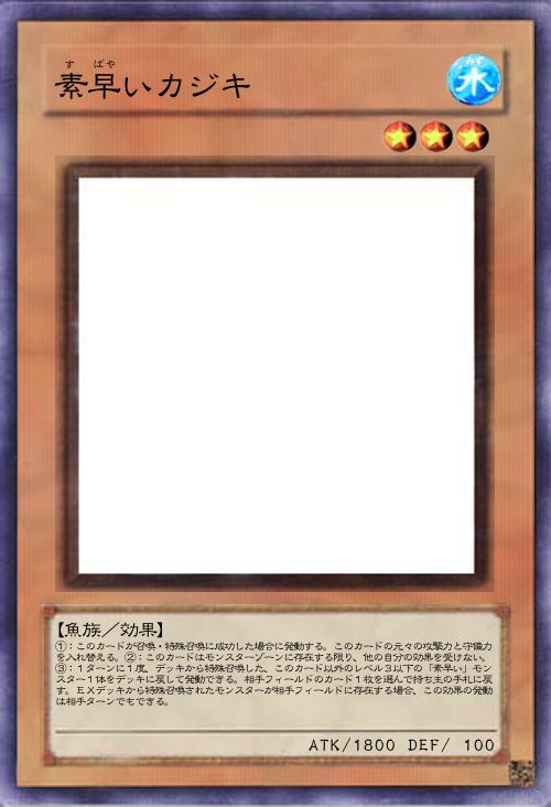 | ①:このカードが召喚・特殊召喚に成功した場合に発動する。このカードの元々の攻撃力と守備力を入れ替える。②:このカードはモンスターゾーンに存在する限り、他の自分の効果を受けない。③:1ターンに1度、デッキから特殊召喚した、このカード以外のレベル3以下の「素早い」モンスター1体をデッキに戻して発動できる。相手フィールドのカード1枚を選んで持ち主の手札に戻す。EXデッキから特殊召喚されたモンスターが相手フィールドに存在する場合、この効果の発動は相手ターンでもできる。 | |||