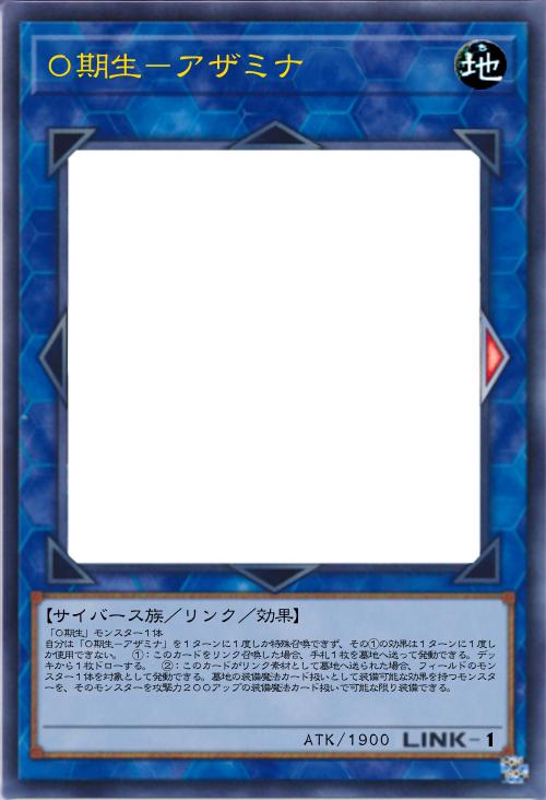 | 「0期生」モンスター1体 自分は「0期生-アザミナ」を1ターンに1度しか特殊召喚できず、その①の効果は1ターンに1度しか使用できない。 ①:このカードをリンク召喚した場合、手札1枚を墓地へ送って発動できる。デッキから1枚ドローする。 ②:このカードがリンク素材として墓地へ送られた場合、フィールドのモンスター1体を対象として発動できる。墓地の装備魔法カード扱いとして装備可能な効果を持つモンスターを、そのモンスターを攻撃力200アップの装備魔法カード扱いで可能な限り装備できる。 | |||