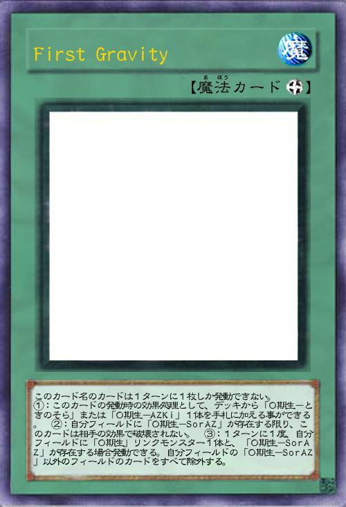 | このカード名のカードは1ターンに1枚しか発動できない。 ①:このカードの発動時の効果処理として、デッキから「0期生-ときのそら」または「0期生-AZKi」1体を手札に加える事ができる。 ②:自分フィールドに「0期生-SorAZ」が存在する限り、このカードは相手の効果で破壊されない。 ③:1ターンに1度、自分フィールドに「0期生」リンクモンスター1体と、「0期生-SorAZ」が存在する場合発動できる。自分フィールドの「0期生-SorAZ」以外のフィールドのカードをすべて除外する。 | |||