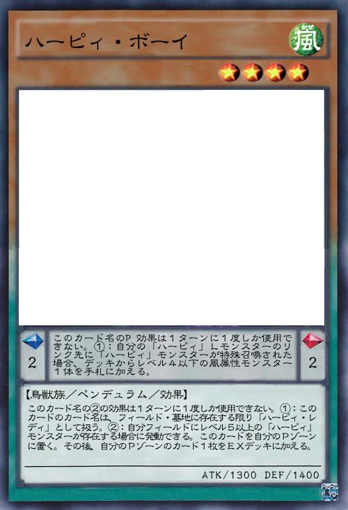 | このカード名のP効果は1ターンに1度しか使用できない。①:自分の「ハーピィ」Lモンスターのリンク先に「ハーピィ」モンスターが特殊召喚された場合、デッキからレベル4以下の風属性モンスター1体を手札に加える。 | |||