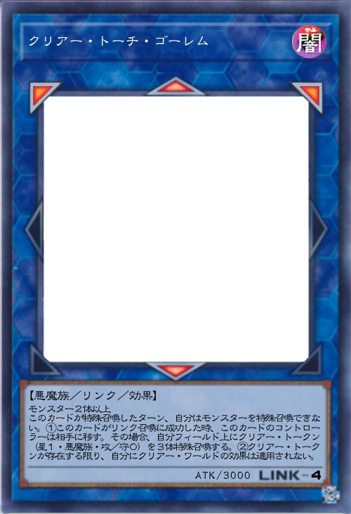 「クリアー版のトーチゴーレム。リンク素材は緩いし、トークンは3体出せるが、クリアー・トーチゴーレムを呼び出したターン、特殊召喚できないので、アドバンス召喚しかないだろう」(2024-07-01 16:27)