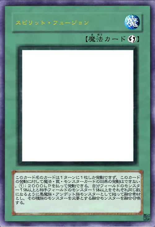 | このカード名のカードは1ターンに1枚しか発動できず、このカードの発動に対して魔法・罠・モンスターカードの効果の発動はできない。①:2000LPを払って発動できる。自分フィールドのモンスター1体以上と相手フィールドのモンスター1体以上をそれぞれ同じ数になるように悪魔族・アンデット族モンスターとして扱って融合素材とし、その種族のモンスターを必要とする融合モンスターを融合召喚する。 | |||