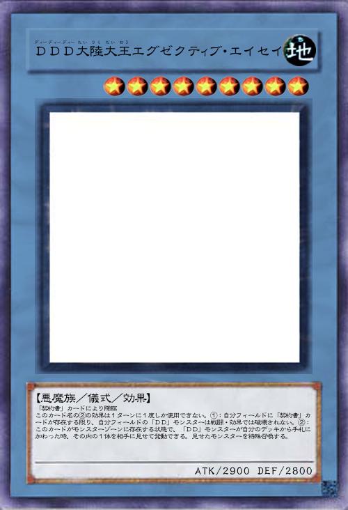 | 「契約書」カードにより降臨 このカード名の②の効果は1ターンに1度しか使用できない。①:自分フィールドに「契約書」カードが存在する限り、自分フィールドの「DD」モンスターは戦闘・効果では破壊されない。②:このカードがモンスターゾーンに存在する状態で、「DD」モンスターが自分のデッキから手札に加わった時、その内の1体を相手に見せて発動できる。見せたモンスターを特殊召喚する。 | |||