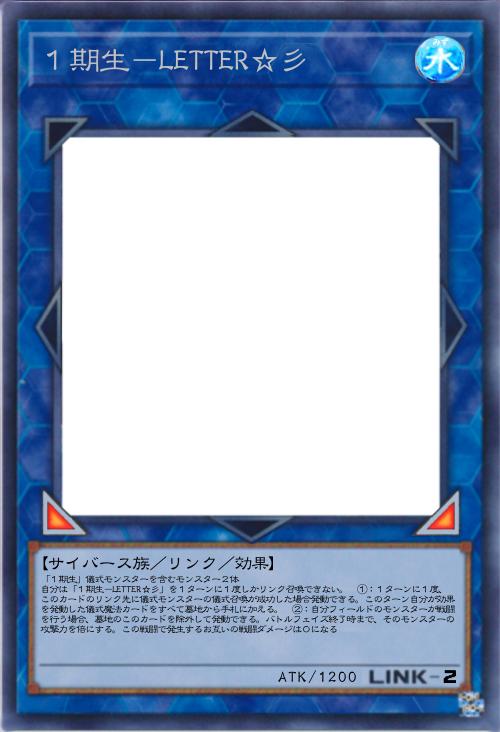 | 「1期生」儀式モンスターを含むモンスター2体 自分は「1期生-LETTER☆彡」を1ターンに1度しかリンク召喚できない。 ①:1ターンに1度、このカードのリンク先に儀式モンスターの儀式召喚が成功した場合発動できる。このターン自分が効果を発動した儀式魔法カードをすべて墓地から手札に加える。 ②:自分フィールドのモンスターが戦闘を行う場合、墓地のこのカードを除外して発動できる。バトルフェイズ終了時まで、そのモンスターの攻撃力を倍にする。この戦闘で発生するお互いの戦闘ダメージは0になる | |||