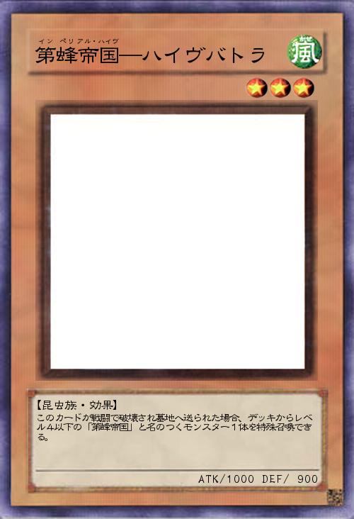 | このカードが戦闘で破壊され墓地へ送られた場合、デッキからレベル4以下の「第蜂帝国」と名のつくモンスター1体を特殊召喚できる。 | |||