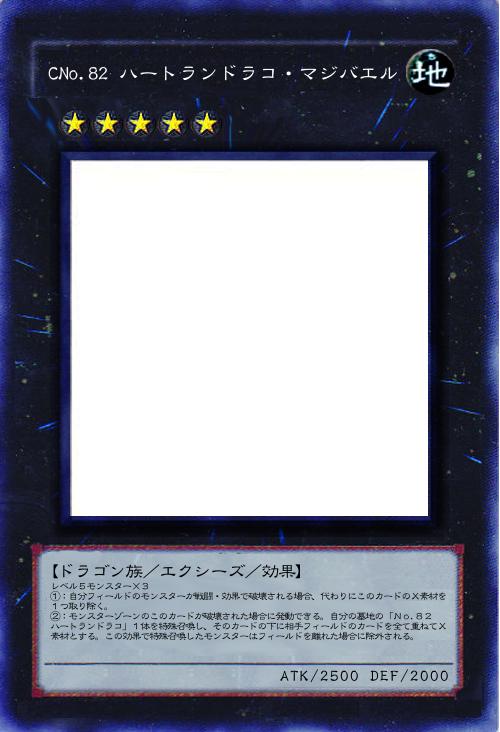 | レベル5モンスター×3 ①:自分フィールドのモンスターが戦闘・効果で破壊される場合、代わりにこのカードのX素材を1つ取り除く。 ②:モンスターゾーンのこのカードが破壊された場合に発動できる。自分の墓地の「No.82 ハートランドラコ」1体を特殊召喚し、そのカードの下に相手フィールドのカードを全て重ねてX素材とする。この効果で特殊召喚したモンスターはフィールドを離れた場合に除外される。 | |||