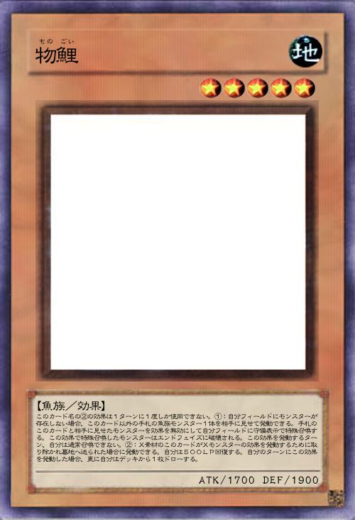 | このカード名の②の効果は1ターンに1度しか使用できない。①:自分フィールドにモンスターが存在しない場合、このカード以外の手札の魚族モンスター1体を相手に見せて発動できる。手札のこのカードと相手に見せたモンスターを効果を無効にして自分フィールドに守備表示で特殊召喚する。この効果で特殊召喚したモンスターはエンドフェイズに破壊される。この効果を発動するターン、自分は通常召喚できない。②:X素材のこのカードがXモンスターの効果を発動するために取り除かれ墓地へ送られた場合に発動できる。自分は500LP回復する。自分のターンにこの効果を発動した場合、更に自分はデッキから1枚ドローする。 | |||