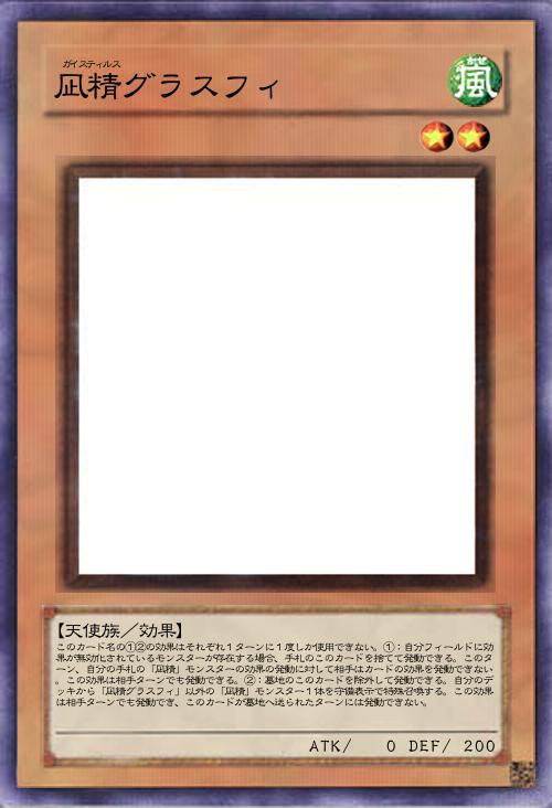 | このカード名の①②の効果はそれぞれ1ターンに1度しか使用できない。①:自分フィールドに効果が無効化されているモンスターが存在する場合、手札のこのカードを捨てて発動できる。このターン、自分の手札の「凪精」モンスターの効果の発動に対して相手はカードの効果を発動できない。この効果は相手ターンでも発動できる。②:墓地のこのカードを除外して発動できる。自分のデッキから「凪精グラスフィ」以外の「凪精」モンスター1体を守備表示で特殊召喚する。この効果は相手ターンでも発動でき、このカードが墓地へ送られたターンには発動できない。 | |||