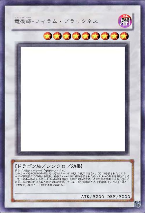 | ドラゴン族チューナー+「竜術師-フィラム」 このカード名の②③の効果はそれぞれ1ターンに1度しか使用できない。①:S召喚されたこのカードが表側表示で存在する限り、相手フィールドに特殊召喚されたモンスターの効果を無効にする。②:相手が手札からモンスター効果を発動した時に発動できる。その効果を無効にする。③:このカードが墓地に送られた時に発動できる。デッキ・自分の墓地から「竜術師-フィラム」1体と「竜魔術」魔法カード1枚を手札に加える。 | |||