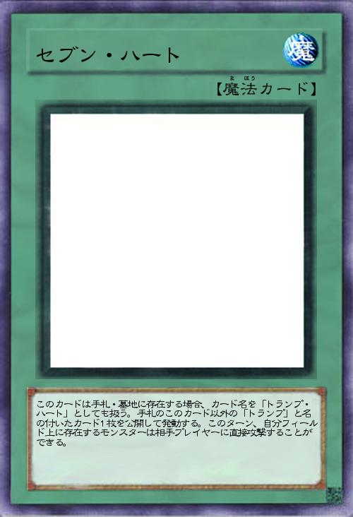| このカードは手札・墓地に存在する場合、カード名を「トランプ・ハート」としても扱う。手札のこのカード以外の「トランプ」と名の付いたカード1枚を公開して発動する。このターン、自分フィールド上に存在するモンスターは相手プレイヤーに直接攻撃することができる。 | |||