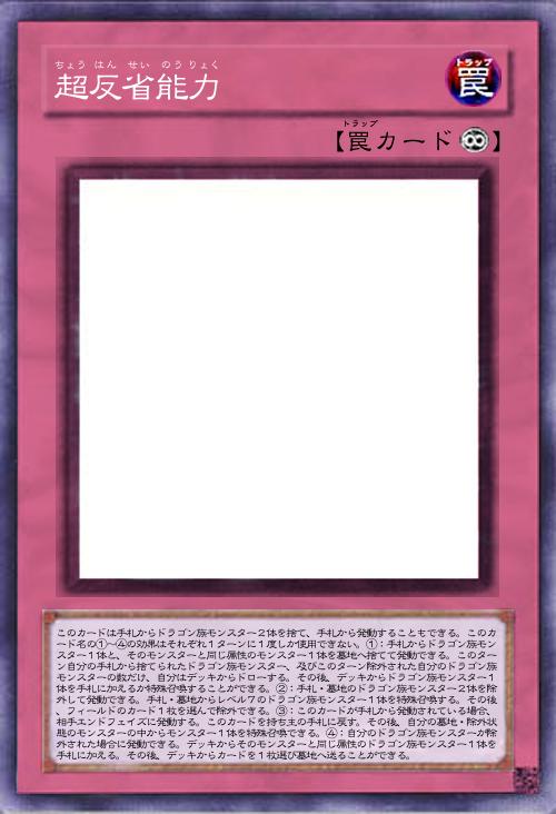 | このカードは手札からドラゴン族モンスター2体を捨て、手札から発動することもできる。このカード名の①~④の効果はそれぞれ1ターンに1度しか使用できない。①:手札からドラゴン族モンスター1体と、そのモンスターと同じ属性のモンスター1体を墓地へ捨てて発動できる。このターン自分の手札から捨てられたドラゴン族モンスター、及びこのターン除外された自分のドラゴン族モンスターの数だけ、自分はデッキからドローする。その後、デッキからドラゴン族モンスター1体を手札に加えるか特殊召喚することができる。②:手札・墓地のドラゴン族モンスター2体を除外して発動できる。手札・墓地からレベル7のドラゴン族モンスター1体を特殊召喚する。その後、フィールドのカード1枚を選んで除外できる。③:このカードが手札から発動されている場合、相手エンドフェイズに発動する。このカードを持ち主の手札に戻す。その後、自分の墓地・除外状態のモンスターの中からモンスター1体を特殊召喚できる。④:自分のドラゴン族モンスターが除外された場合に発動できる。デッキからそのモンスターと同じ属性のドラゴン族モンスター1体を手札に加える。その後、デッキからカードを1枚選び墓地へ送ることができる。 | |||