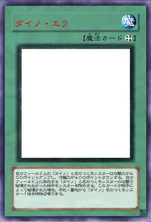 「ダイノのフィールド魔法です。シナリオ・「洗脳の溶けたダイノティラノだったが、進化した時に倒したTWたちの中に時間制御をしていた者がおり、そのせいでダイノの生息していた時間軸まで移動してしまった。」コメントよろしくお願いします。」(2012-08-11 20:38)