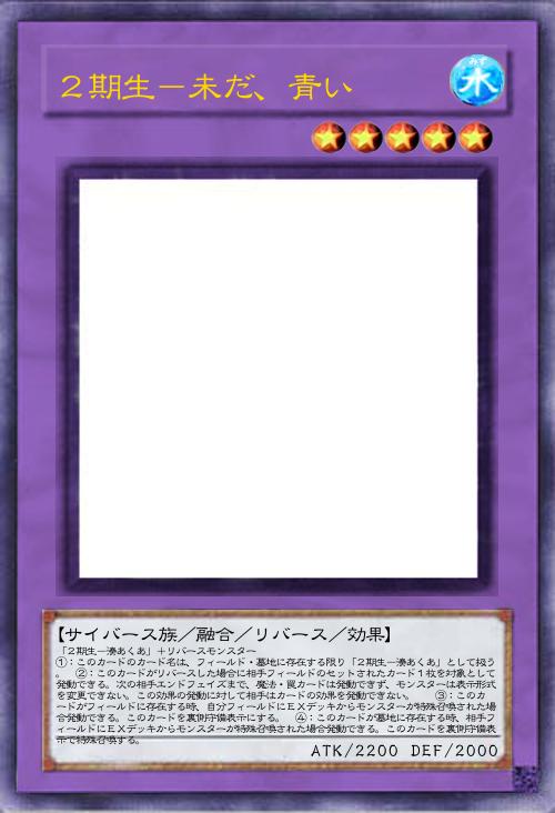 | 「2期生-湊あくあ」+リバースモンスター ①:このカードのカード名は、フィールド・墓地に存在する限り「2期生-湊あくあ」として扱う。 ②:このカードがリバースした場合に相手フィールドのセットされたカード1枚を対象として発動できる。次の相手エンドフェイズまで、魔法・罠カードは発動できず、モンスターは表示形式を変更できない。この効果の発動に対して相手はカードの効果を発動できない。 ③:このカードがフィールドに存在する時、自分フィールドにEXデッキからモンスターが特殊召喚された場合発動できる。このカードを裏側守備表示にする。 ④:このカードが墓地に存在する時、相手フィールドにEXデッキからモンスターが特殊召喚された場合発動できる。このカードを裏側守備表示で特殊召喚する。 | |||