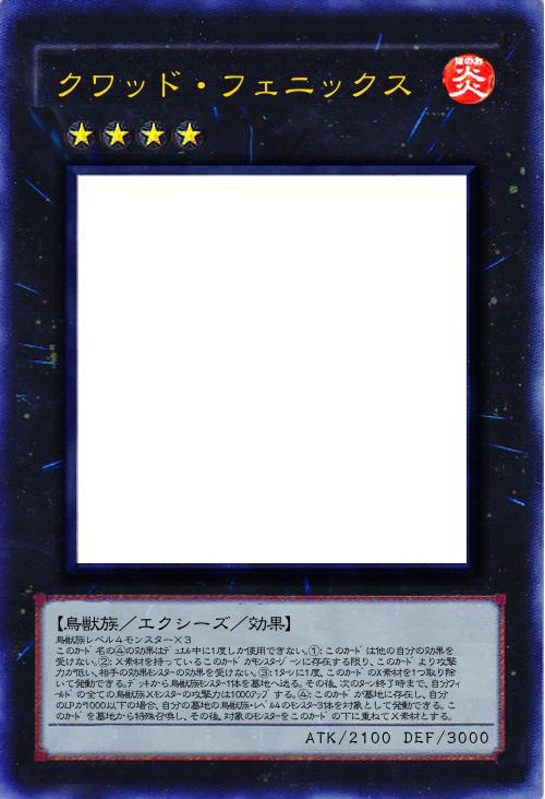 | 鳥獣族レベル4モンスター×3 このカード名の④の効果はデュエル中に1度しか使用できない。①:このカードは他の自分の効果を受けない。②:X素材を持っているこのカードがモンスターゾーンに存在する限り、このカードより攻撃力が低い、相手の効果モンスターの効果を受けない。③:1ターンに1度、このカードのX素材を1つ取り除いて発動できる。デッキから鳥獣族モンスター1体を墓地へ送る。その後、次のターン終了時まで、自分フィールドの全ての鳥獣族Xモンスターの攻撃力は1000アップする。④:このカードが墓地に存在し、自分のLPが1000以下の場合、自分の墓地の鳥獣族・レベル4のモンスター3体を対象として発動できる。このカードを墓地から特殊召喚し、その後、対象のモンスターをこのカードの下に重ねてX素材とする。 | |||