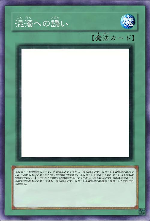 | このカードを発動するターン、自分はEXデッキから「虚ろなる少女」のカード名が記されたモンスター以外のモンスターを1体しか特殊召喚できず、このカード名のカードは1ターンに1枚しか発動できない。①:手札を1枚捨てて発動できる。デッキから「虚ろなる少女」またはそのカード名が記されたモンスター1体と「虚ろなる少女」のカード名が記された魔法・罠カード1枚を手札に加える。 | |||