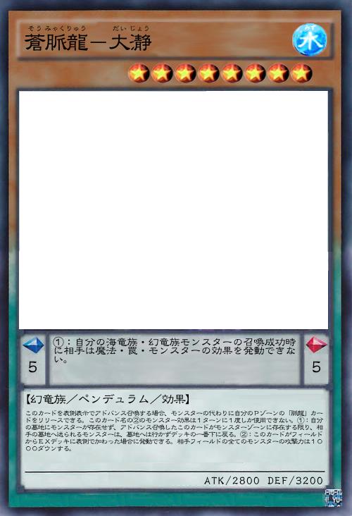 | ①:自分の海竜族・幻竜族モンスターの召喚成功時に相手は魔法・罠・モンスターの効果を発動できない。 | |||