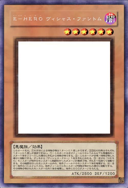 | このカード名の、①の方法による特殊召喚は1ターンに1度しかできず、②③④の効果はそれぞれ1ターンに1度しか使用できない。①:このカードは自分フィールドのレベル4以下の悪魔族モンスター1体をリリースした場合に手札から特殊召喚できる。②:このカードが召喚・特殊召喚した場合に発動できる。デッキから「ヴィシャス・クロー」1枚を手札に加える。③:自分の「HERO」モンスターが相手のモンスターと戦闘を行ったダメージ計算終了時、手札を1枚捨てて発動できる。その戦闘を行ったモンスター以外の、相手フィールドのモンスター1体を破壊する。④:自分・相手のバトルフェイズに、相手フィールドにモンスターが特殊召喚された場合に発動できる。その特殊召喚されたモンスターの内1体を破壊し、相手に500ダメージを与える。 | |||