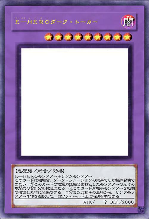 | E―HEROモンスター+リンクモンスター このカードは超融合、ダーク・フュージョンの効果でしか特殊召喚できない。①このカードの攻撃力は融合素材としたモンスターの元々の攻撃力の合計分の数値になる。②このカードが相手モンスターを戦闘で破壊した時に発動できる。自分または相手の墓地から、リンクモンスター1体を選択して、自分フィールド上に特殊召喚できる。 | |||