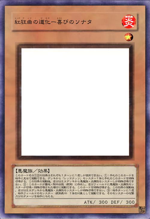 | このカード名の①②の効果はそれぞれ1ターンに1度しか使用できない。①:手札のこのカードを相手に見せて発動できる。デッキから「レッドナッツ」モンスター1体と手札のこのカードを特殊召喚する。この効果の発動後、自分はEXデッキから悪魔族・炎属性モンスターしか特殊召喚できない。②:このカードが墓地・除外状態(表側)に存在し、自分フィールドに悪魔族・炎属性モンスターが召喚・特殊召喚された場合に発動できる。このカードを特殊召喚する。この効果の発動後、自分はEXデッキから悪魔族・炎属性モンスターしか特殊召喚できない。③:相手ターンに1度、相手フィールドのモンスター(表側表示)1体を対象として発動できる。そのモンスターの攻撃力分のダメージを相手に与える。 | |||