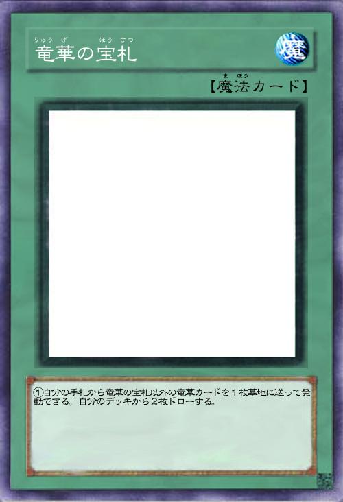 | ①自分の手札から竜華の宝札以外の竜華カードを1枚墓地に送って発動できる。自分のデッキから2枚ドローする。 | |||