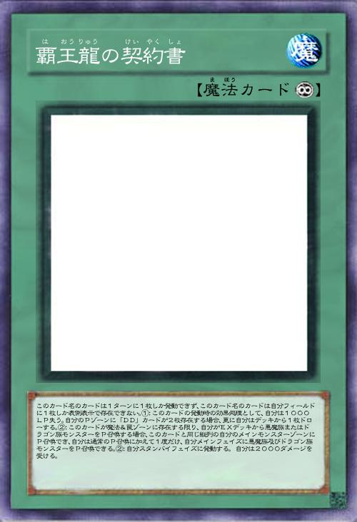| このカード名のカードは1ターンに1枚しか発動できず、このカード名のカードは自分フィールドに1枚しか表側表示で存在できない。①:このカードの発動時の効果処理として、自分は1000LP失う。自分のPゾーンに「DD」カードが2枚存在する場合、更に自分はデッキから1枚ドローする。②:このカードが魔法&罠ゾーンに存在する限り、自分がEXデッキから悪魔族またはドラゴン族モンスターをP召喚する場合、このカードと同じ縦列の自分のメインモンスターゾーンにP召喚でき、自分は通常のP召喚に加えて1度だけ、自分メインフェイズに悪魔族及びドラゴン族モンスターをP召喚できる。②:自分スタンバイフェイズに発動する。自分は2000ダメージを受ける。 | |||