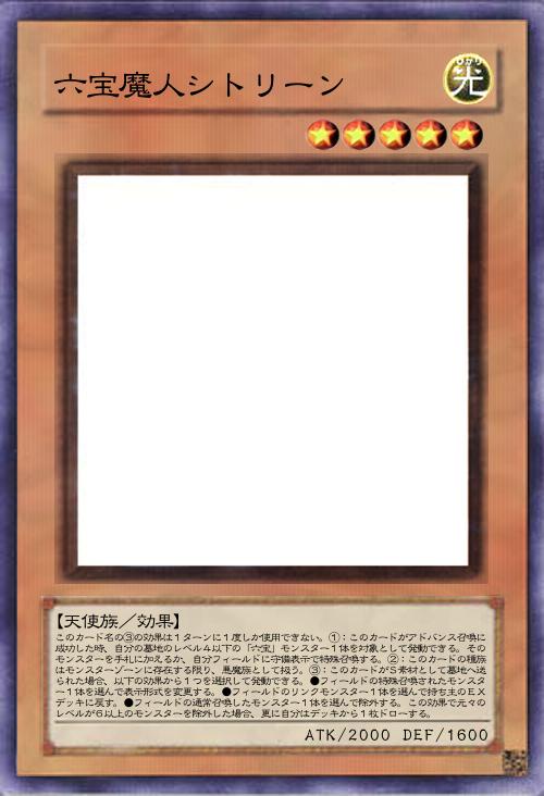 | このカード名の③の効果は1ターンに1度しか使用できない。①:このカードがアドバンス召喚に成功した時、自分の墓地のレベル4以下の「六宝」モンスター1体を対象として発動できる。そのモンスターを手札に加えるか、自分フィールドに守備表示で特殊召喚する。②:このカードの種族はモンスターゾーンに存在する限り、悪魔族として扱う。③:このカードがS素材として墓地へ送られた場合、以下の効果から1つを選択して発動できる。●フィールドの特殊召喚されたモンスター1体を選んで表示形式を変更する。●フィールドのリンクモンスター1体を選んで持ち主のEXデッキに戻す。●フィールドの通常召喚したモンスター1体を選んで除外する。この効果で元々のレベルが6以上のモンスターを除外した場合、更に自分はデッキから1枚ドローする。 | |||