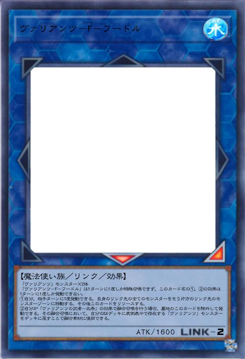 | 「ヴァリアンツ」モンスター×2体 「ヴァリアンツ-F-フードル」は1ターンに1度しか特殊召喚できず、このカード名の①、②の効果は1ターンに1度しか発動できない。 ①自分、相手ターンに1度発動できる。自身のリンク先の全てのモンスターをもう片方のリンク先のモンスターゾーンに移動する。その後このカードをリリースする。 ②自分が「ヴァリアンツの武者-北条」の効果で融合召喚を行う場合、墓地のこのカードを除外して発動できる。その融合召喚において、自分のEXデッキに表側表示で存在する「ヴァリアンツ」モンスターをデッキに戻すことで融合素材に使用できる。 | |||