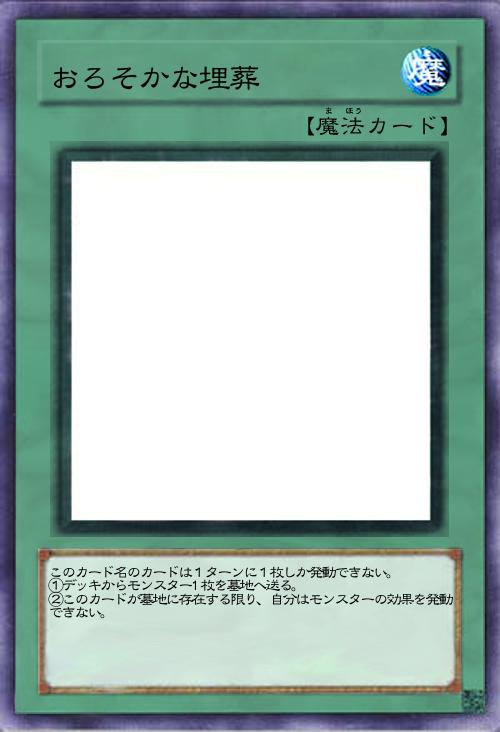 「制限カード「おろかな埋葬」の調整版です。モンスター効果以外でこのカードを墓地から回収するか除外する手段を確保できれば、3枚投入+「おろかな埋葬」により安定した墓地肥やしが可能です。」(2024-08-31 22:40)