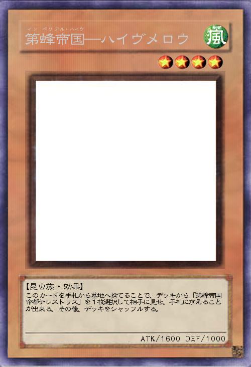 | このカードを手札から墓地へ捨てることで、デッキから「第蜂帝国帝都テレストリス」を1枚選択して相手に見せ、手札に加えることが出来る。その後、デッキをシャッフルする。 | |||