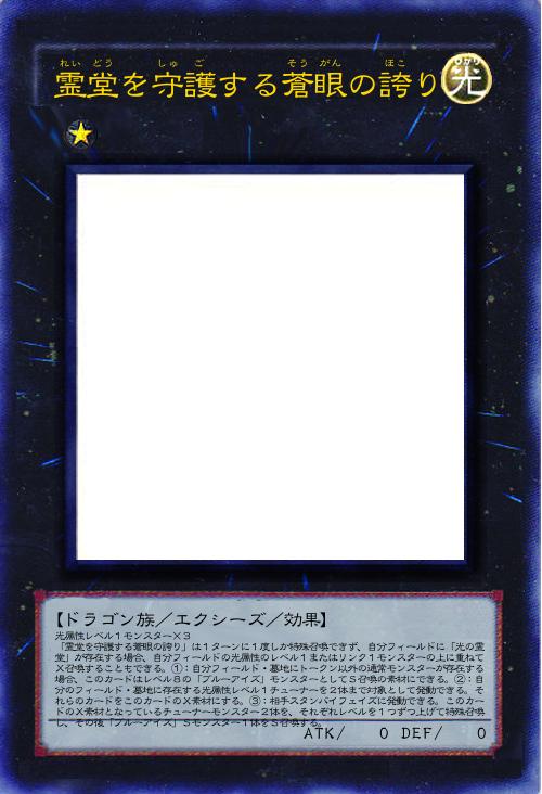 | 光属性レベル1モンスター×3 「霊堂を守護する蒼眼の誇り」は1ターンに1度しか特殊召喚できず、自分フィールドに「光の霊堂」が存在する場合、自分フィールドの光属性のレベル1またはリンク1モンスターの上に重ねてX召喚することもできる。①:自分フィールド・墓地にトークン以外の通常モンスターが存在する場合、このカードはレベル8の「ブルーアイズ」モンスターとしてS召喚の素材にできる。②:自分のフィールド・墓地に存在する光属性レベル1チューナーを2体まで対象として発動できる。それらのカードをこのカードのX素材にする。③:相手スタンバイフェイズに発動できる。このカードのX素材となっているチューナーモンスター2体を、それぞれレベルを1つずつ上げて特殊召喚し、その後「ブルーアイズ」Sモンスター1体をS召喚する。 | |||