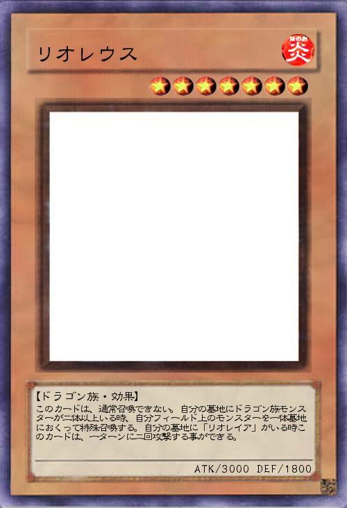 | このカードは、通常召喚できない。自分の墓地にドラゴン族モンスターが二体以上いる時、自分フィールド上のモンスターを一体墓地におくって特殊召喚する。自分の墓地に「リオレイア」がいる時このカードは、一ターンに二回攻撃する事ができる。 | |||