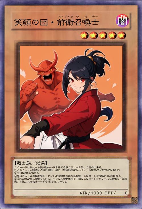 | このカードは手札から狂波動カードを捨てる事でリリース無しで召喚出来る。 ①このカードが戦闘する時に発動、場に「狂波動悪魔トークン」(ATK2000/DEF2000 闇 LV5)を1体特殊召喚する。 ②場に居る「狂波動悪魔トークン」が破壊された時に発動、このカードの攻撃力は200になる。 ③②の効果が既に発動しているターンのみ発動出来る、場のこのカードをリリースし墓地の「狂波動」が記された魔法カードを1枚手札に加える。 | |||