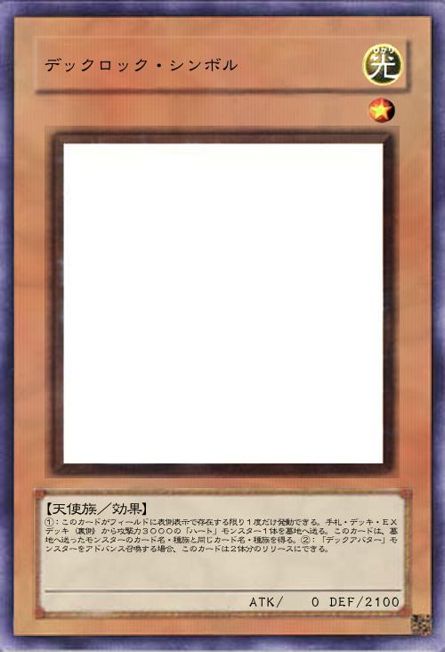 | ①:このカードがフィールドに表側表示で存在する限り1度だけ発動できる。手札・デッキ・EXデッキ(裏側)から攻撃力3000の「ハート」モンスター1体を墓地へ送る。このカードは、墓地へ送ったモンスターのカード名・種族と同じカード名・種族を得る。②:「デックアバター」モンスターをアドバンス召喚する場合、このカードは2体分のリリースにできる。 | |||