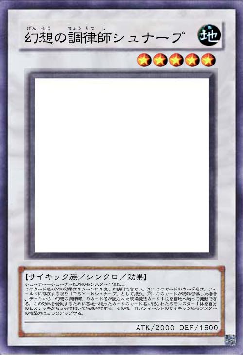 | チューナー+チューナー以外のモンスター1体以上 このカード名の②の効果は1ターンに1度しか使用できない。①:このカードのカード名は、フィールドに存在する限り「PSY-Nシュナープ」として扱う。②:このカードが特殊召喚した場合、デッキから「幻想の調律師」のカード名が記された装備魔法カード1枚を墓地へ送って発動できる。この効果を発動するために墓地へ送ったカードのカード名が記されたSモンスター1体を自分のEXデッキからS召喚扱いで特殊召喚する。その後、自分フィールドのサイキック族モンスターの攻撃力は500アップする。 | |||