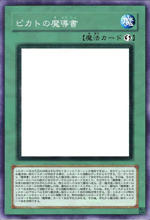 | このカード名の①②の効果はそれぞれ1ターンに1ターンしか使用できない。自分フィールドにのみ魔法使い族モンスターが存在する場合、このカードの発動はデッキからもできる。①:デッキから「魔導書」のカテゴリ名が記された魔法使い族モンスター1体を手札に加える。その後、そのモンスターのレベルの数だけ自分のデッキの上からカードをめくり、その中から「魔導書」カードを任意の数選び自分の手札に加える。残りのカードは全て墓地へ送る。②:魔法使い族モンスター以外のモンスターの効果が発動した時、墓地のこのカードと手札・フィールド・墓地の「魔導書」カード1枚を除外して発動できる。その発動を無効にし破壊する。その後、手札・デッキからそのモンスター以下のレベルを持つ魔法使い族モンスター1体を特殊召喚できる。③:このカードが除外されたターンのエンドフェイズに発動できる。除外状態のこのカードをデッキに戻し、デッキからこのカード名以外の「魔導書」カード1枚を手札に加える。その後、手札から魔法使い族モンスター1体を召喚できる。 | |||