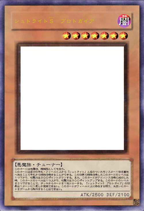 このカードは地属性、機械族としても扱う。 このカードは自分の手札・フィールド上から「シュトライト」と名のついたモンスター1体を墓地へ送ることで手札から特殊召喚することができる。この効果で特殊召喚したこのカードのレベルは1つ下がり、攻撃力は300ポイントダウンする。また、このカードがアドバンス召喚に成功した時、このカードのレベルは1つ上がり、攻撃力は300ポイントアップする。このカードのレベルを2つ下げることで、デッキからカードを1枚ドローする。「シュトライトS プロトガイア」の効果は1ターンに1度しか使用できない。このカードがフィールド上に存在する限り、お互いにカードをゲームから除外することはできない。 |