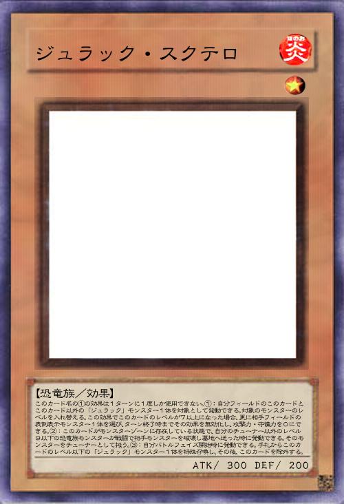 | このカード名の①の効果は1ターンに1度しか使用できない。①:自分フィールドのこのカードとこのカード以外の「ジュラック」モンスター1体を対象として発動できる。対象のモンスターのレベルを入れ替える。この効果でこのカードのレベルが7以上になった場合、更に相手フィールドの表側表示モンスター1体を選び、ターン終了時までその効果を無効化し、攻撃力・守備力を0にできる。②:このカードがモンスターゾーンに存在している状態で、自分のチューナー以外のレベル9以下の恐竜族モンスターが戦闘で相手モンスターを破壊し墓地へ送った時に発動できる。そのモンスターをチューナーとして扱う。③:自分バトルフェイズ開始時に発動できる。手札からこのカードのレベル以下の「ジュラック」モンスター1体を特殊召喚し、その後、このカードを除外する。 | |||