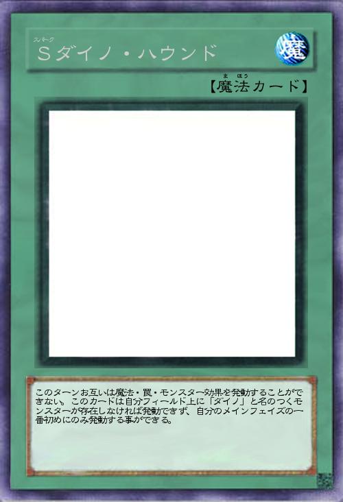 | このターンお互いは魔法・罠・モンスター効果を発動することができない。このカードは自分フィールド上に「ダイノ」と名のつくモンスターが存在しなければ発動できず、自分のメインフェイズの一番初めにのみ発動する事ができる。 | |||