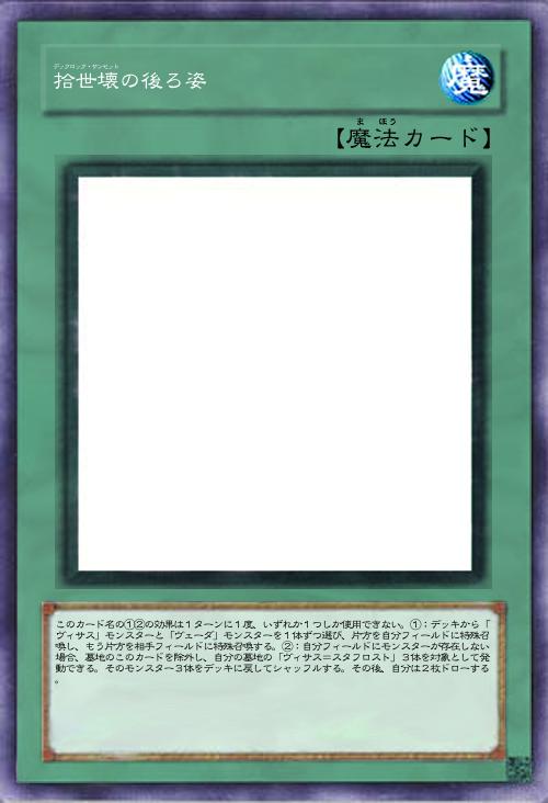 | このカード名の①②の効果は1ターンに1度、いずれか1つしか使用できない。①:デッキから「ヴィサス」モンスターと「ヴェーダ」モンスターを1体ずつ選び、片方を自分フィールドに特殊召喚し、もう片方を相手フィールドに特殊召喚する。②:自分フィールドにモンスターが存在しない場合、墓地のこのカードを除外し、自分の墓地の「ヴィサス=スタフロスト」3体を対象として発動できる。そのモンスター3体をデッキに戻してシャッフルする。その後、自分は2枚ドローする。 | |||