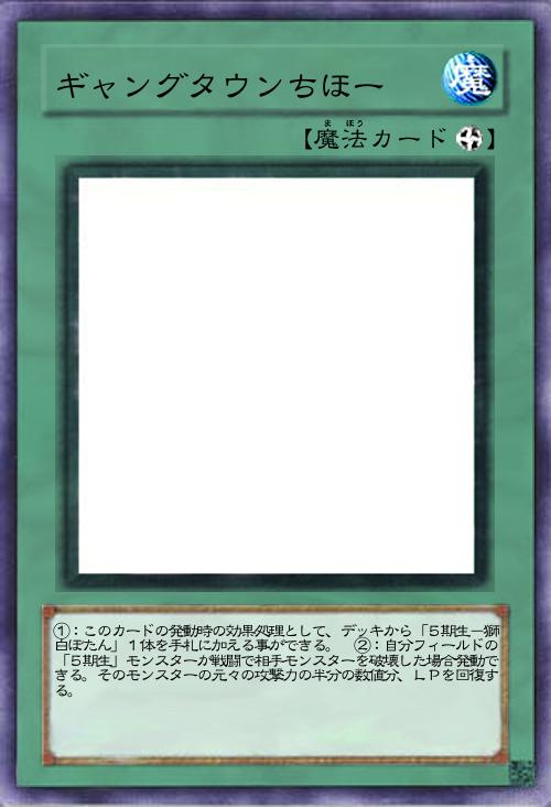 | ①:このカードの発動時の効果処理として、デッキから「5期生-獅白ぼたん」1体を手札に加える事ができる。 ②:1ターンに1度、自分フィールドの「5期生」モンスターが戦闘で相手モンスターを破壊した場合発動できる。そのモンスターの元々の攻撃力の半分の数値分、LPを回復する。 | |||