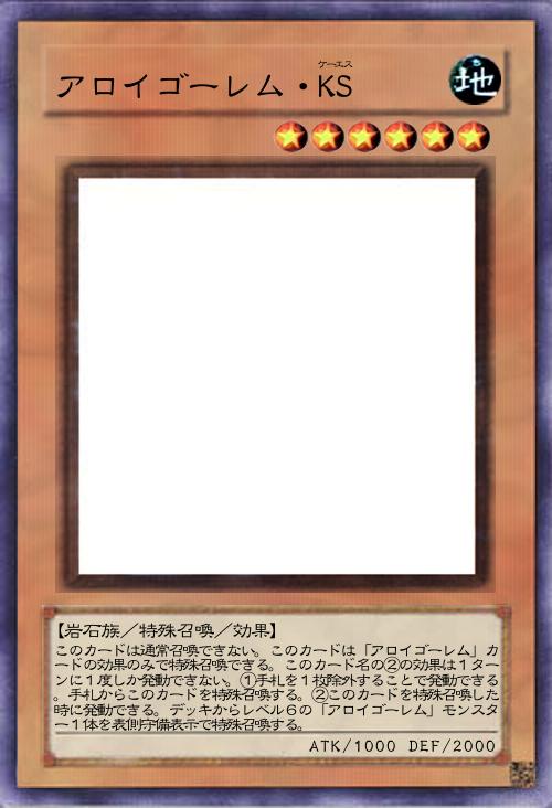 | このカードは通常召喚できない。このカードは「アロイゴーレム」カードの効果のみで特殊召喚できる。このカード名の②の効果は1ターンに1度しか発動できない。①手札を1枚除外することで発動できる。手札からこのカードを特殊召喚する。②このカードを特殊召喚した時に発動できる。デッキからレベル6の「アロイゴーレム」モンスター1体を表側守備表示で特殊召喚する。 | |||