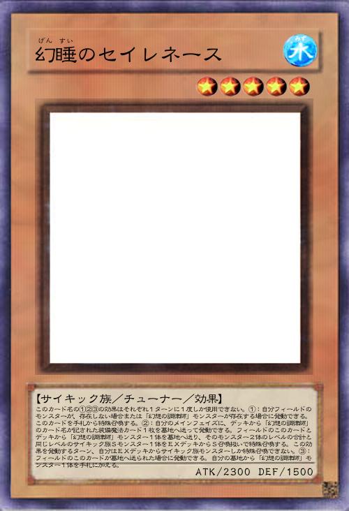 | このカード名の①②③の効果はそれぞれ1ターンに1度しか使用できない。①:自分フィールドのモンスターが、存在しない場合または「幻想の調律師」モンスターが存在する場合に発動できる。このカードを手札から特殊召喚する。②:自分のメインフェイズに、デッキから「幻想の調律師」のカード名が記された装備魔法カード1枚を墓地へ送って発動できる。フィールドのこのカードとデッキから「幻想の調律師」モンスター1体を墓地へ送り、そのモンスター2体のレベルの合計と同じレベルのサイキック族Sモンスター1体をEXデッキからS召喚扱いで特殊召喚する。この効果を発動するターン、自分はEXデッキからサイキック族モンスターしか特殊召喚できない。③:フィールドのこのカードが墓地へ送られた場合に発動できる。自分の墓地から「幻想の調律師」モンスター1体を手札に加える。 | |||