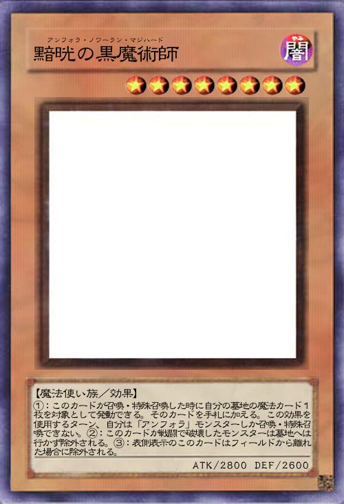 「2枚目アンフォラです。元ネタは混沌の黒魔術師。ブラホから次元融合で大量展開したり、死者蘇生を使い回してこのカードを沢山出す動きが再現できますね。