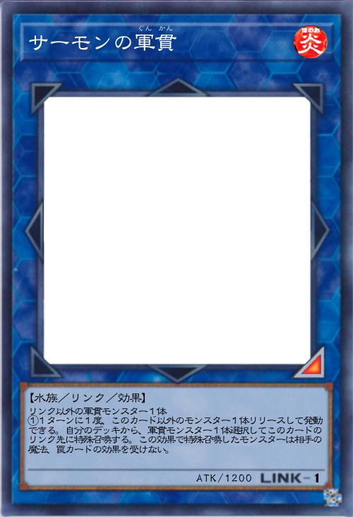 | リンク以外の軍貫モンスター1体 ①1ターンに1度、このカード以外のモンスター1体リリースして発動できる。自分のデッキから、軍貫モンスター1体選択してこのカードのリンク先に特殊召喚する。この効果で特殊召喚したモンスターは相手の魔法、罠カードの効果を受けない。 | |||