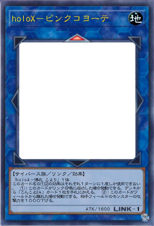 | 「holoX-博衣 こより」1体 このカード名の①②の効果はそれぞれ1ターンに1度しか使用できない。 ①:このカードがリンク召喚に成功した場合発動できる。デッキから「こんこよ24」カード1枚を手札に加える。 ②:このカードがフィールドから離れた場合発動できる。相手フィールドのモンスターの攻撃力を1000下げる。 | |||